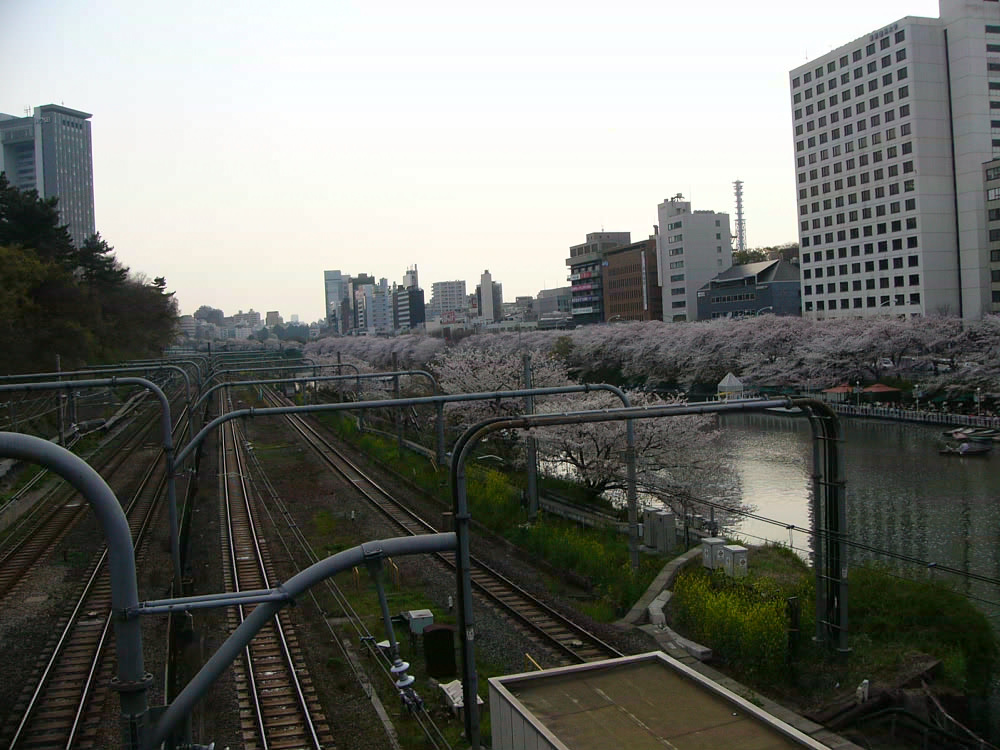 本日の外堀(飯田橋駅西口のところから)の桜です。クリックすると大きな画像が開きます。